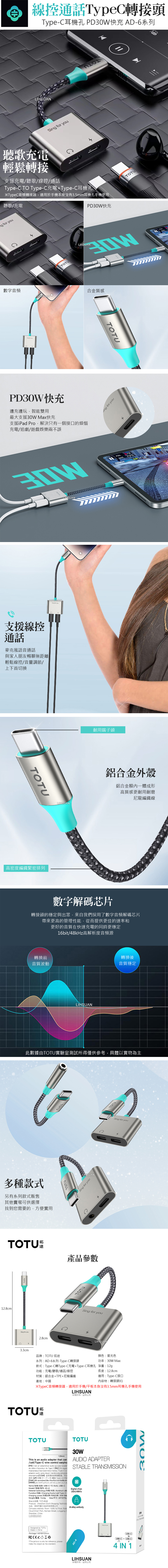 ●支援充電/聽歌/線控/通話,輕鬆轉接