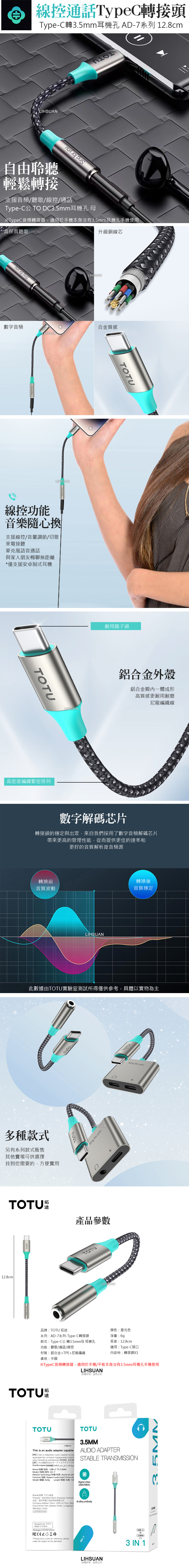※TypeC音頻轉接器,適用於手機/平板本身沒有3.5mm耳機孔手機使用