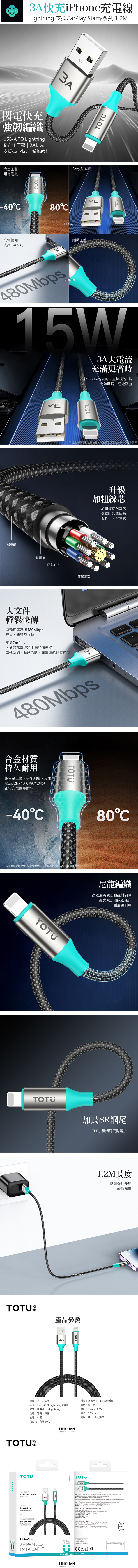 ●鋁合金工藝|3A快充|支援CarPlay|編織線材