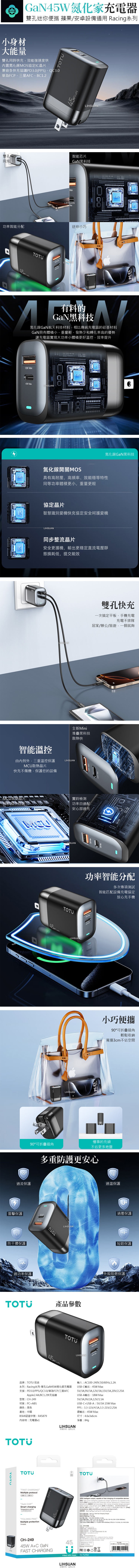 ●系列:Racing系列-雙孔GaN45W氮化鎵充電器